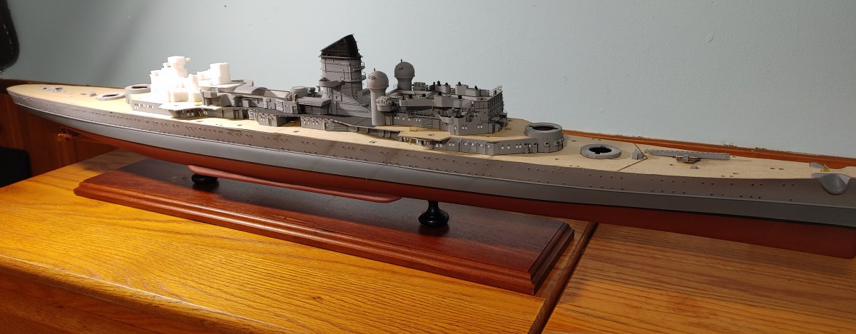 I've been building models since the early 60's with a side journey into the realm of real life, wife and children. I decided to get back into the hobby after an overnight trip with the Cub Scouts to the U.S.S. Massachusetts prompted me to buy the old Revell kit that's now only available in the Battleship's gift shop. I was amazed at how far the industry had come since the days when after market parts amounted to a set of decals or if you were lucky, a set of Cragar rims from my friend Jimmy's parts box. I was even more amazed at how high prices had risen since the days of Fitt's Photo and Hobby where a car would cost 2.25 and a Tamiya Tiger I was a whopping 6.95. I pulled out all the old stuff stuck up in the attic and set up on top of the washing machine in the cellar. Just this one kit I told the Missus. Well, The flame was re-lit... The top of the washer grew to an ever expanding corner in the family room, a spray booth in the garage and a display case full of ships, planes and tanks. And now, like many of us, I buy 'em faster than I build 'em and I have multiple levels of insanity OOB, straight out of the Box JAR, just about right, some Photo etch maybe brass barrels OTT or Over the top. Wooden deck , Lots of Photo Etch and Brass Barrels (Usually involving very expansive upgrade sets) ODE or off the deep end. Throw in a Pontos set, the veterens model WWT or What was I thinking? These are some of the kits I've built over the last few years. I took a lot of photo's while building them but alas, the Memory stick I was storing them on was damaged and the cloud inadvertently evaporated I hope you enjoy my stuff. feel free to E-mail your comments and even some of your work and I'll post them here |