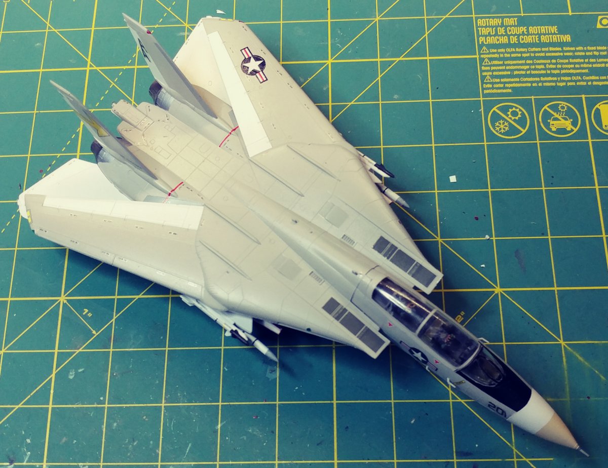 The kit has gone together with only minor annoyances. In spite of the age of the kit, the parts required little trimming. I did have the forward section of the fuselage separate a little and no amount cement would defuse the two sections once they dried, so I will have to repair that annoyance. (the photo's make it look a lot worse than it is.) The aftermarket resin part cockpit tub required a tremendous amount of modification resulting in a large amount of dust which needed to be cleaned off (as can be seen by the in the photos) I probably should have trimmed and cleaned before I painted and assembled them.(proof that hindsight is 20/20) The decals I reduced worked well for the most part, but I had one somehow flip and the yellows in the squadron insignias were a little translucent. Again, something I'll remember in the future.