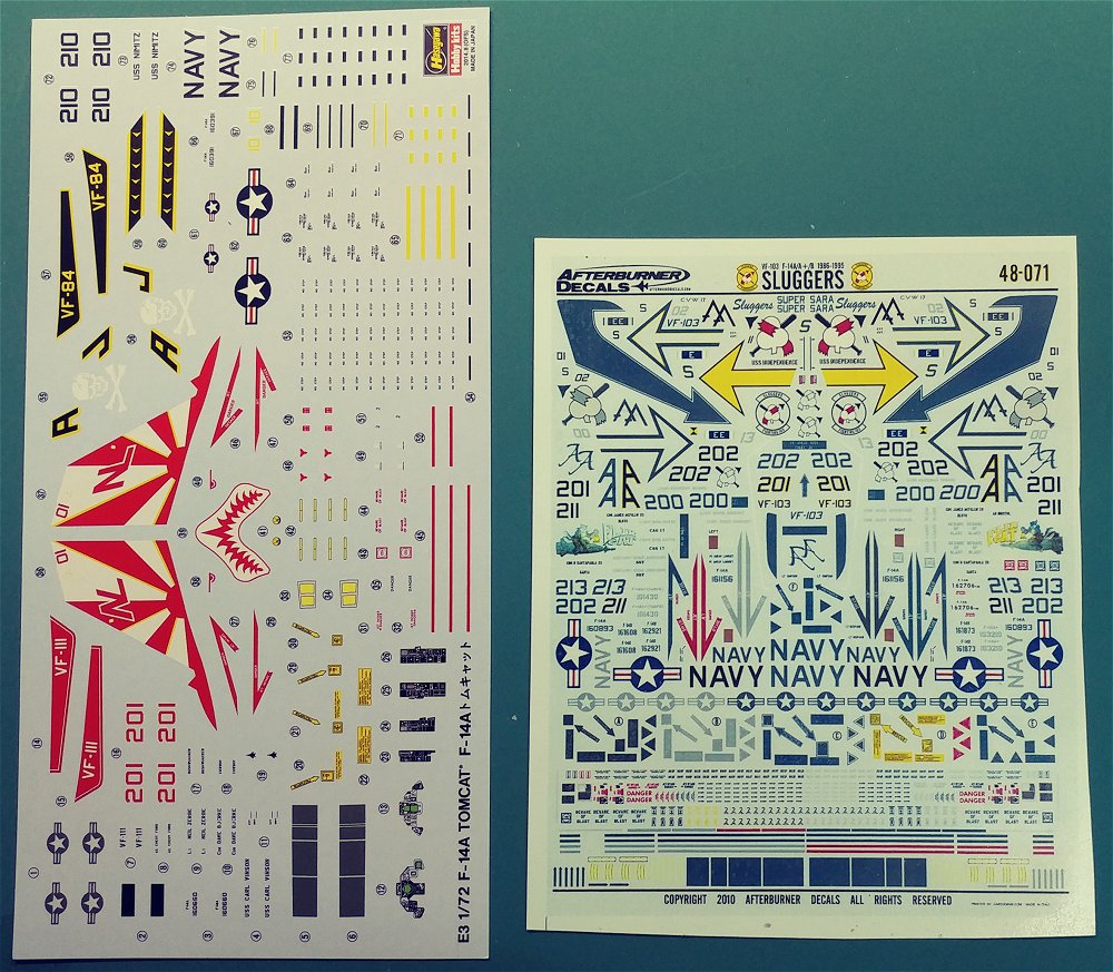 F-14A Tomcat Cockpit Set, Aires 7163 Afterburner Decals, VF103 Sluggers, 48-071 (reduced to 1/72nd scale) |