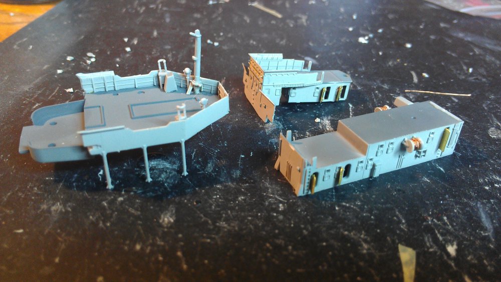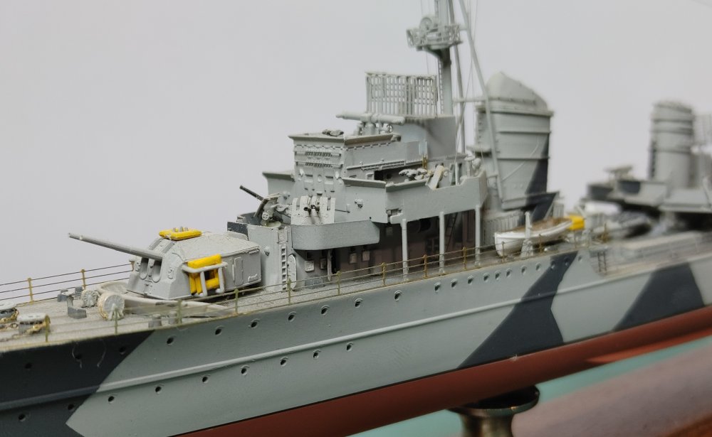 Paint The ship was painted overall RAL7001 Hellgrau 50KMS with Dunkel Blaugrau camouflage decks, Oxide Red Hull again, pretty straight forward... |