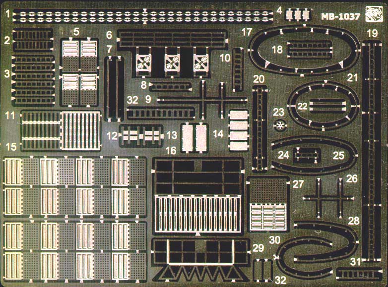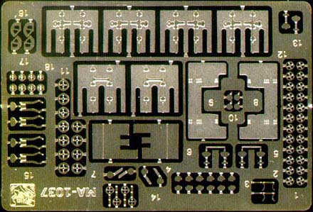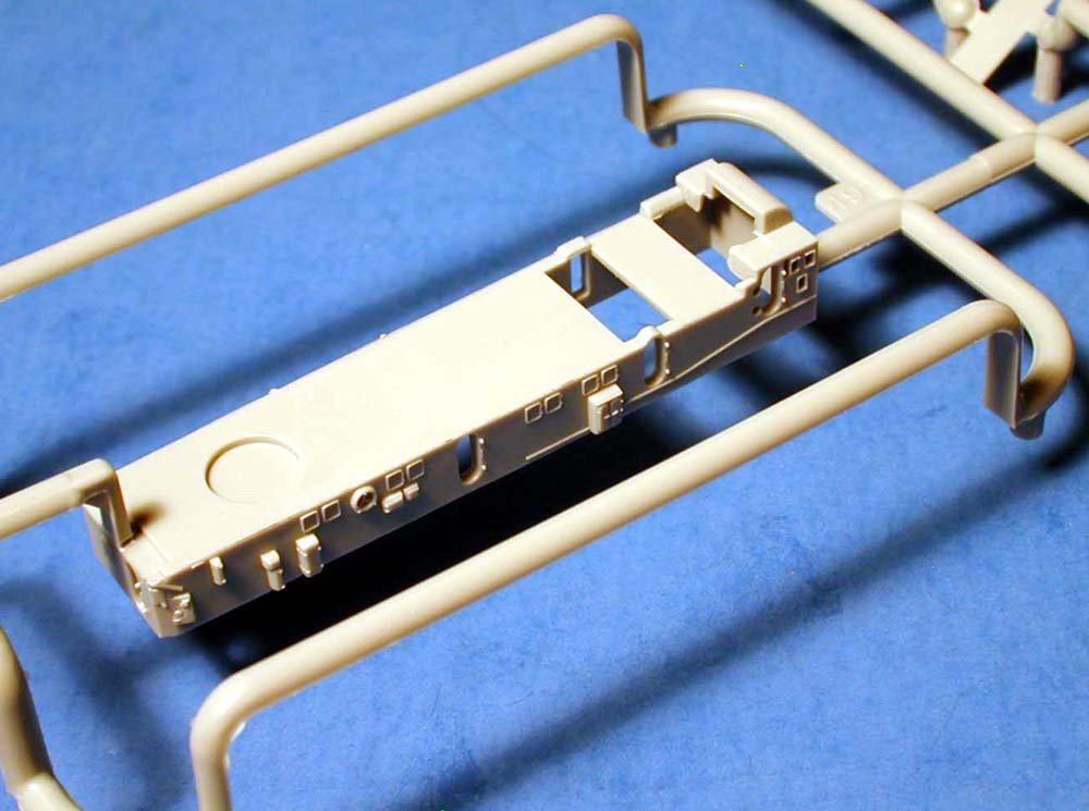 The kit comes with 14 spues, the upper hull and a base molded in medium gray and 3 small sheets of Photo etch.